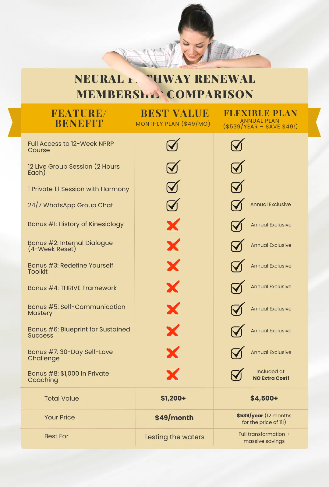 That’s why I created The Neural Pathway Renewal Process—a transformative program designed to help you rewire your brain, shed outdated patterns, and finally step into the success and fulfillment you’ve always desired.